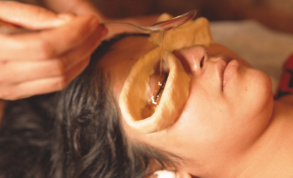 A soothing therapy where medicated ghee is retained over the eyes to relieve strain, dryness, and improve vision naturally.